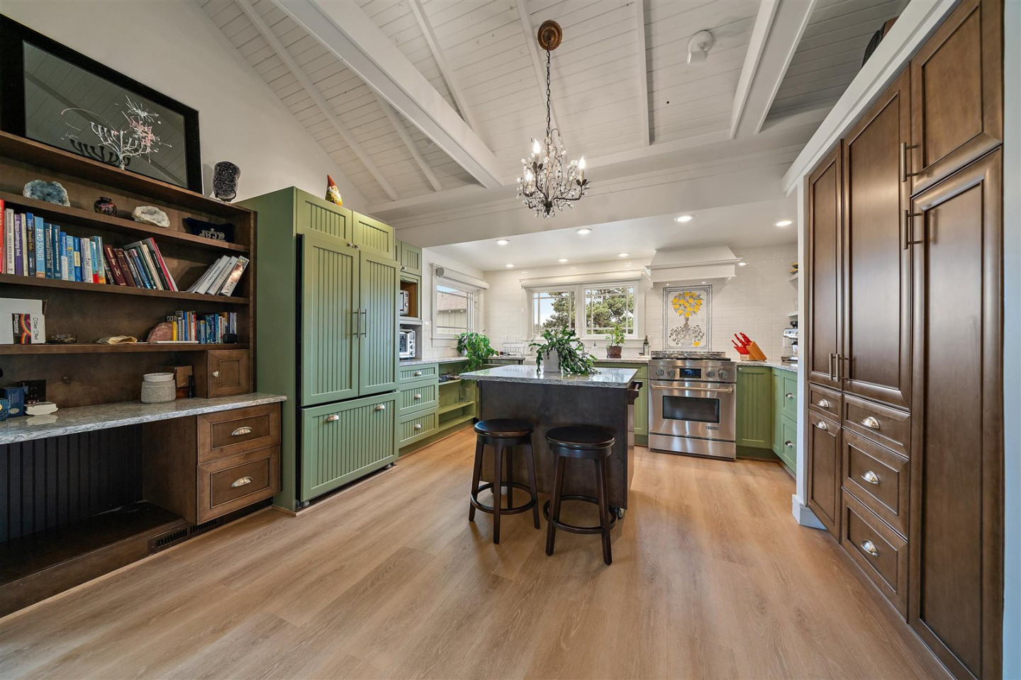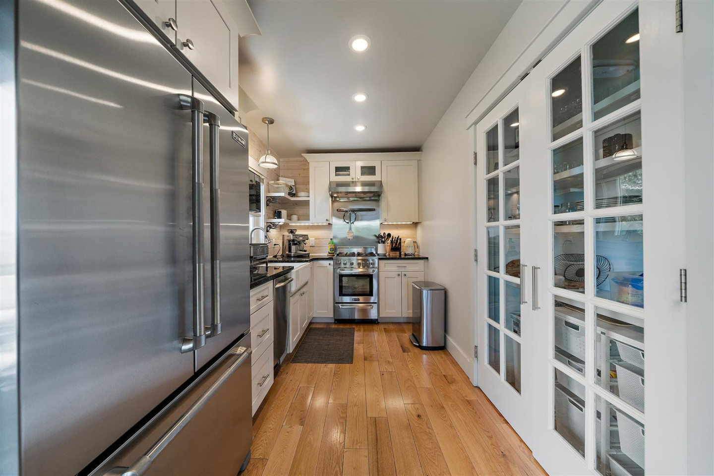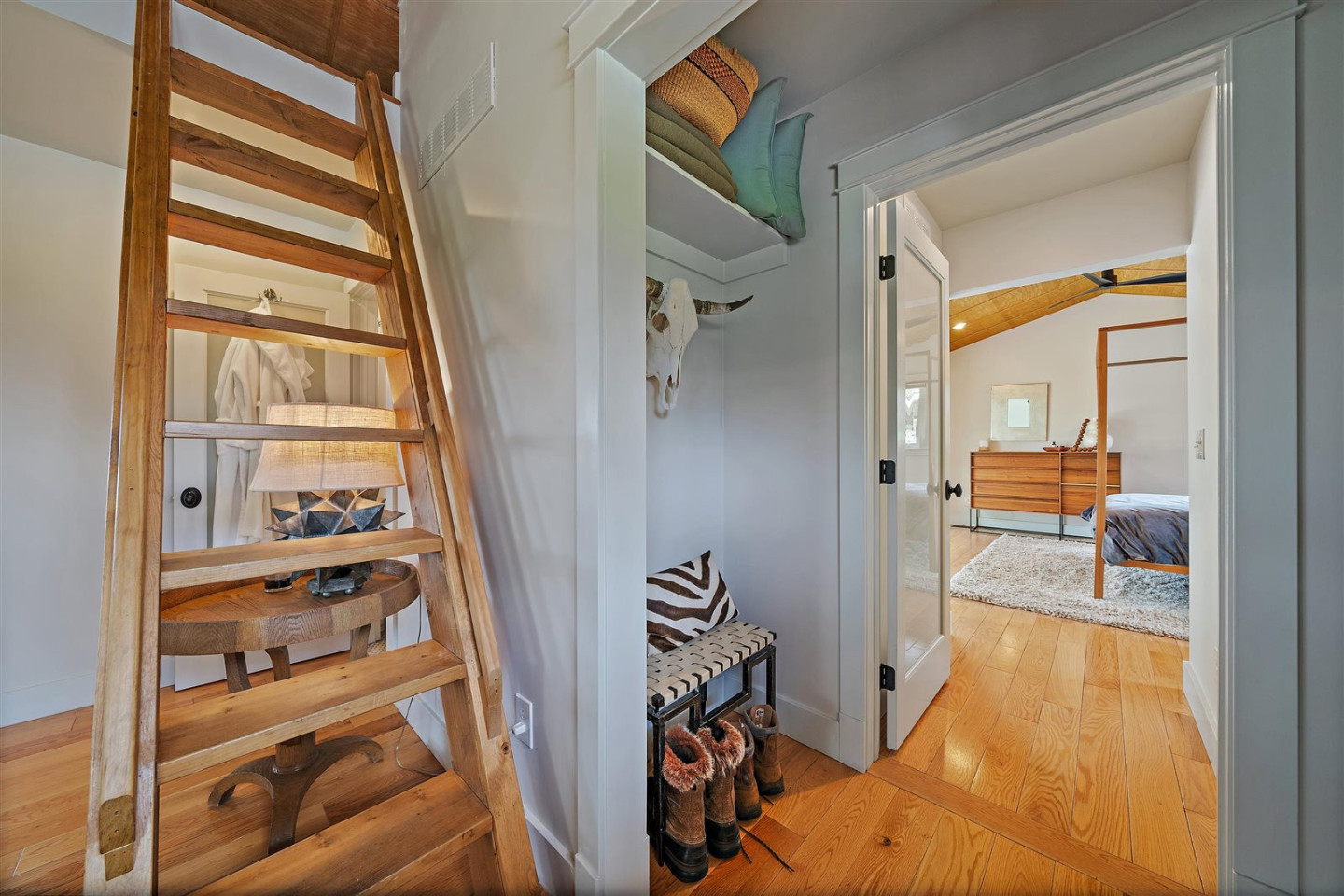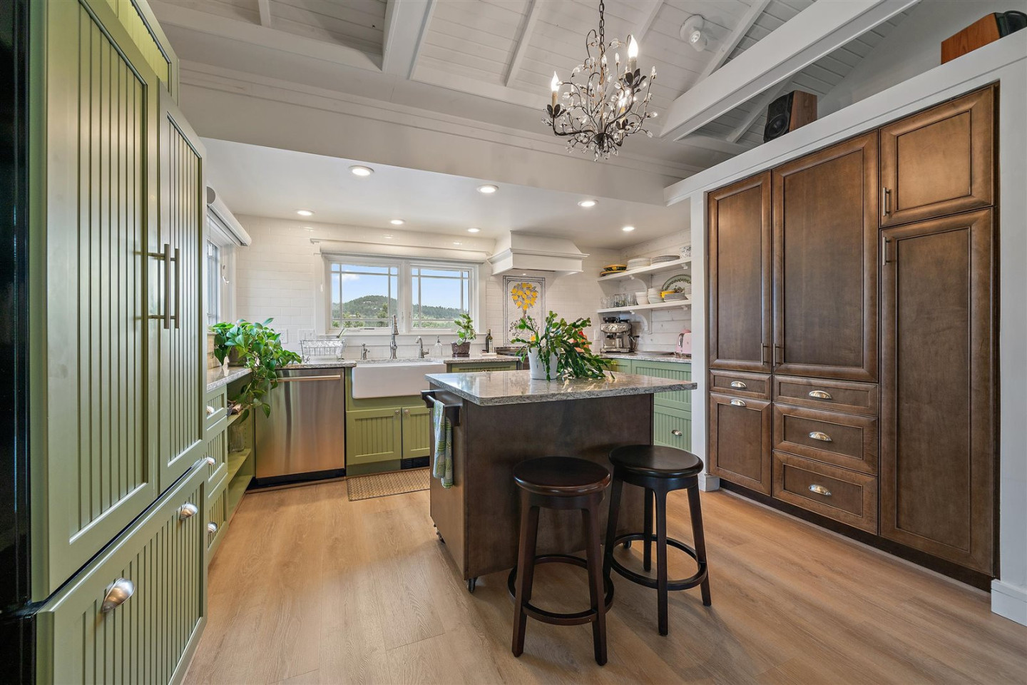 Originally the 1941 caretaker’s home, now a fully renovated one-bedroom residence (1,204 sq ft) with central A/C, modern finishes, Pella windows, and a heated 3-car garage with loft.